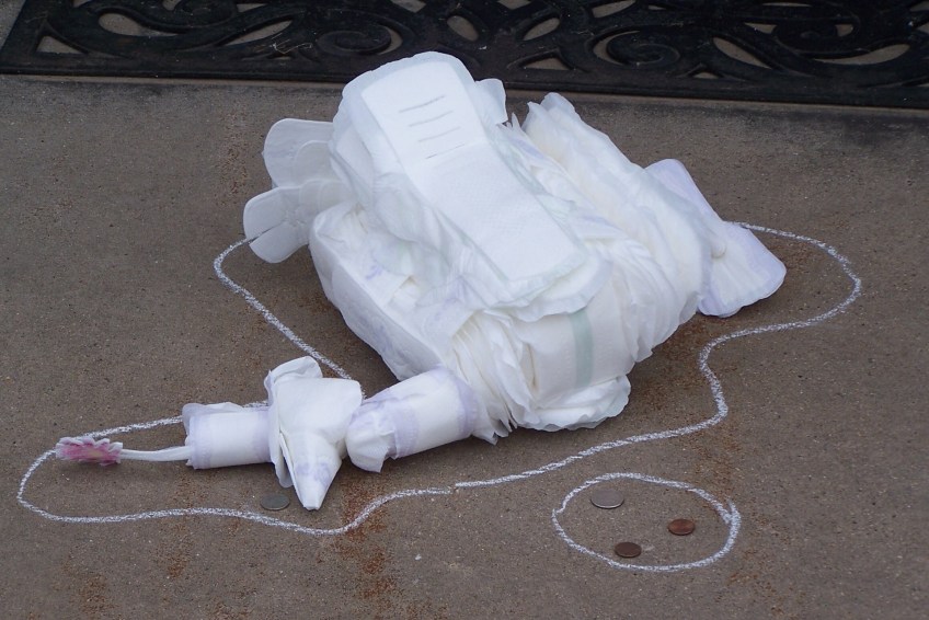 A contradiction in terms: the sanitary seagull Published February 7, 2012 at 2320 × 1550 in DANGER, PENNY ROBINSON!! He wouldn’t stand up on his spindly tampon legs, so I got around it this way.