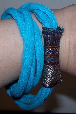 border bracelet Published May 16, 2012 at 256 × 384 in Let’s try this again… The closure here is the border from an Indian silk tunic I’m working into another project. I wish it were rounder, but I’ll get that figured out at some point.